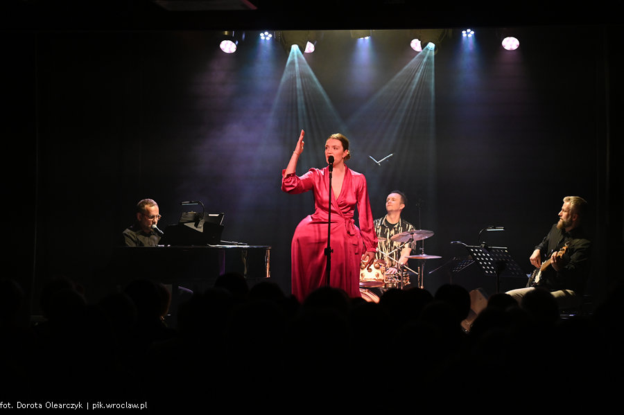 W programie jej recitalu znalazły się utwory m.in. Leonarda Cohena, Charles’a Aznavoura, Jaromira Nohavicy w przekładach męża artystki Romana Kołakowskiego, czyli wybitnego tłumacza i twórcy tekstów. O wydarzeniach poświęconych pamięci kompozytora, poety, piosenkarza, tłumacza pisaliśmy na łamach Pik-a ( https://pik.wroclaw.pl/pamieci-romana-kolakowskiego/#prettyPhoto https://pik.wroclaw.pl/non-est-finis-gwiazdy-w-holdzie-romanowi-kolakowskiemu-koncert-w-teatrze-polskim/)