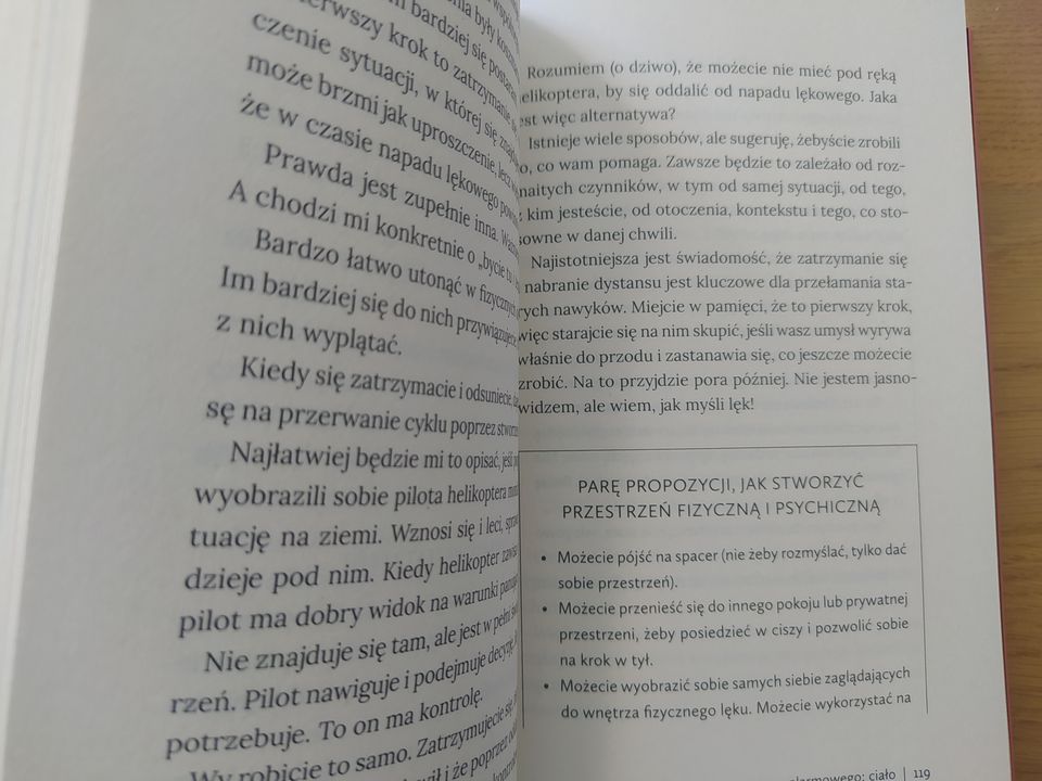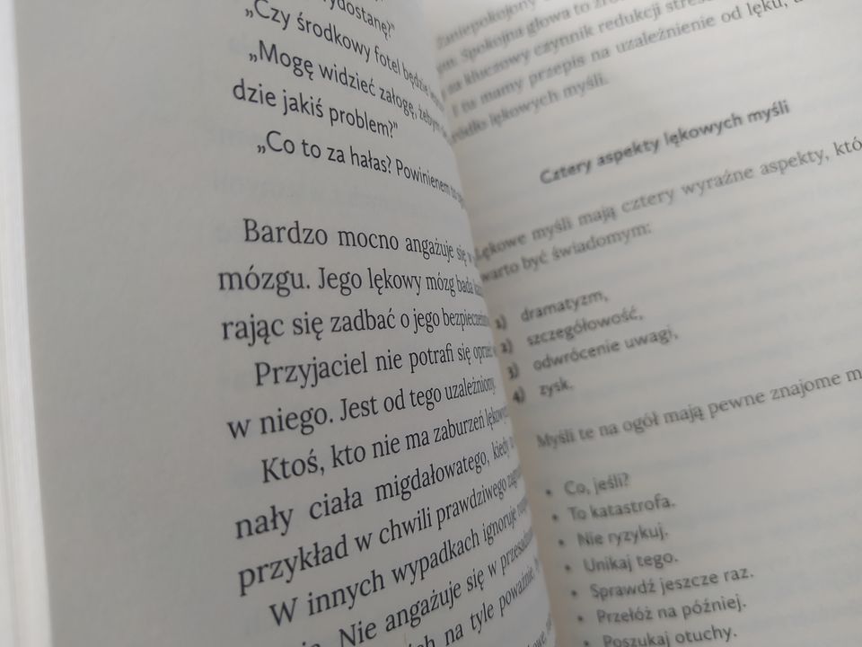 Poradnik czyta się dobrze. Odkrywa on mechanizmy zarządzania lękiem używając do tego jasnego i zrozumiałego języka. Do niektórych jego fragmentów powraca się bez obarczania siebie niemocą czytelniczą. Autor jasno opisuje źródło problemu, metody na przełamanie schematu, możliwości na odzyskanie życia i sposoby na zapobieganie nawrotom lękowego ja.