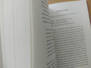 Zaczynam czytać. Pierwszy problem – mała czcionka. Trudno, spróbuję raz jeszcze, jak będę lepiej widziała. Odkładam na lepszy czas, lepsze oświetlenie, mniej zmęczone oczy. Podejście numer dwa- zmęczone oczy, ale lepsze oświetlenie. Okazuje się, że dla mnie, powieść nie ma łatwego „progu wejścia” w lekturową przyjemność. Rozległość fabularna powoduje u mnie potknięcia, zagubienia wśród ilości imion postaci. „Próg wejścia” wymaga podniesienia nogi na pewną wysokość, która jest w tej chwili dla mnie nieosiągalna. Wybijam się raz jeszcze i okazuje się, że nawet błądzenie po fragmentach powieści okazuje się ciekawym zajęciem. Fragmentaryczność i pobieżne łapanie wątków daje chwilowe oderwanie od realności i zajęcie myśli fabularnym światem wykreowanym przez autorkę.