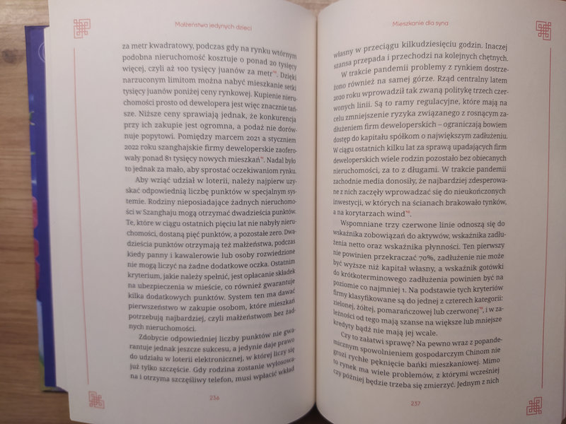 Debiutancki reportaż Nadii Urban, Piotra Sochonia i Weroniki Truszczyńskiej o chińskiej polityce jednego dziecka to publicystyka najwyższych lotów. Zgrabnie prowadzoną, żywą, interesującą narrację nie zapowiada grafika na okładce i wzmianka (na pierwszej stronie) o tym, że autorzy są twórcami podcastu. Nie warto jednak sugerować się zewnętrzem, kiedy wnętrze aż kipi od zapisu ciekawych obserwacji.