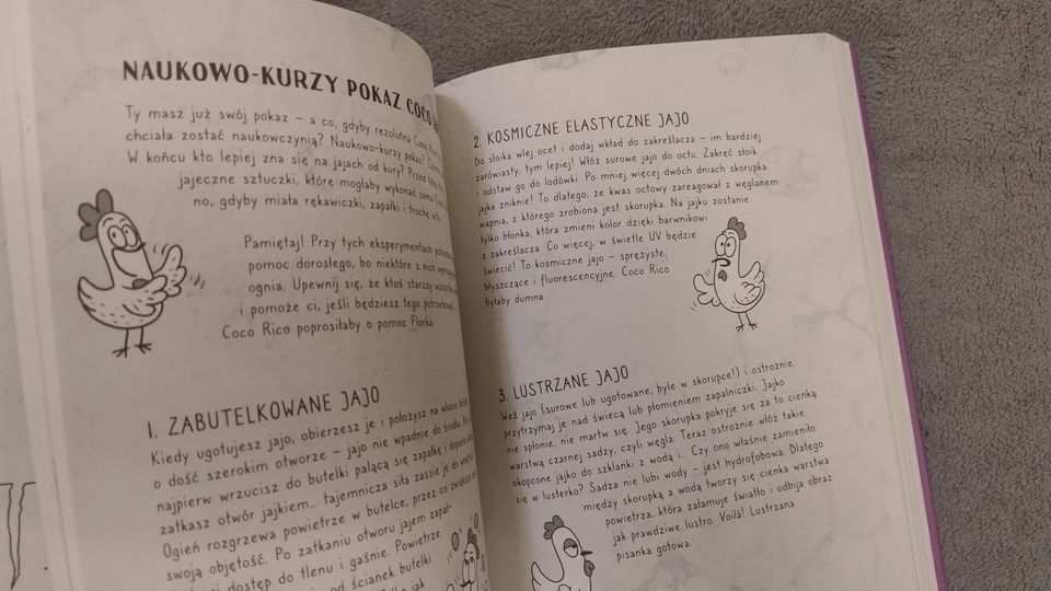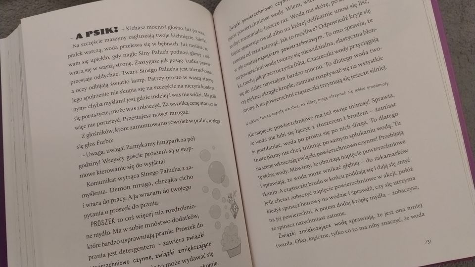 Na początku poznajemy 10 zasad naukowca, które pozwolą bezpiecznie przeprowadzić eksperymenty przez dzieci w wieku 8+. Jeśli nie widzieliście jeszcze tańczącego ryżu, samopompującego się balonu, układu okresowego pierwiastków z notatkami o polskich akcentach to nawet pobieżne przejrzenie książki może przynieść popularyzatorską korzyść. Wspomnienie o chemicznych mistrzach smrodu może stać się humorystycznym akcentem czytelniczej przygody.
