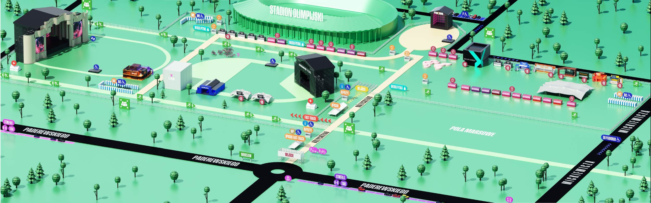 – w piątek oraz sobotę (27–28.06) w godzinach 12:00–00:00 w punkcie przy wejściu głównym oraz w punkcie przy wejściu Fast Track (wyłącznie dla osób posiadających bilety oraz karnety Fast Track);