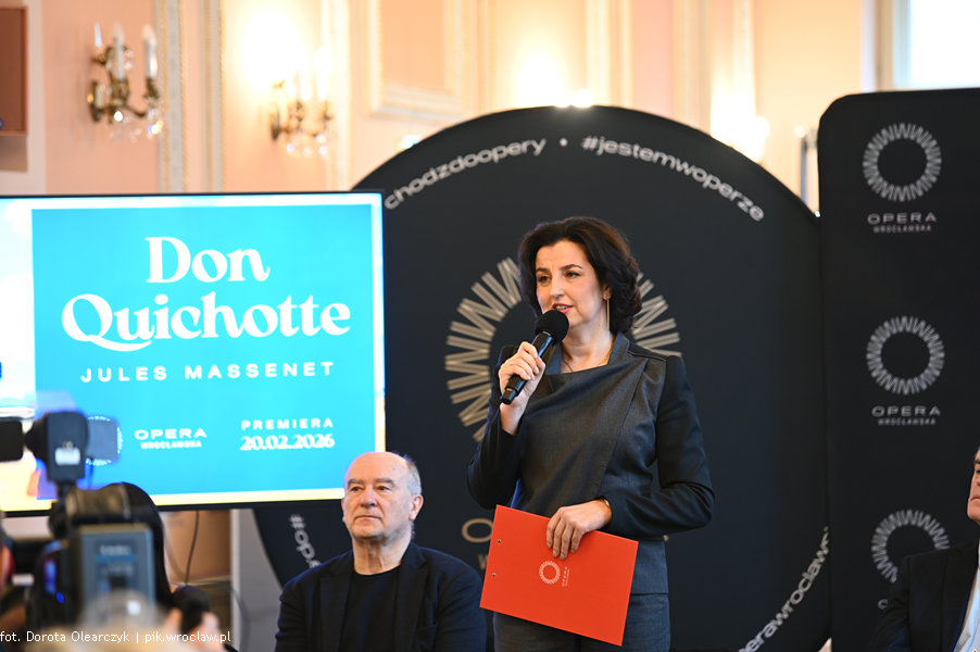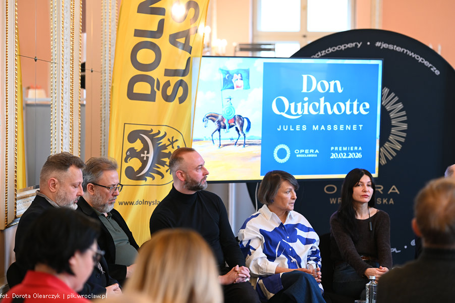 Trwają ostatnie przygotowania do piątkowej premiery opery „Don Quichotte” Jules’a Masseneta w reżyserii Marka Weissa. Podczas konferencji prasowej w Operze Wrocławskiej artyści, twórcy i realizatorzy opowiadali o ciekawie zapowiadającej się inscenizacji. Spotkanie otworzyła Dyrektor Opery Wrocławskiej Agnieszka Franków-Żelazny, w konferencji udział wzięli: reżyser Marek Weiss-Grzesieński, kierownik muzyczny premiery Patrick Fournillier, choreografka Izadora Weiss, scenografka Jagna Janicka oraz projektanci kostiumów Paprocki&Brzozowski. O swojej pracy nad spektaklem opowiedzieli soliści: Justyna Rapacz (Dulcinea), Rafał Siwek i Łukasz Konieczny (Don Kichot) oraz Grzegorz Szostak i Jacek Jaskuła (Sancho Pansa), a także prof. dr hab. Tomasz Strahl (solo wiolonczelowe).