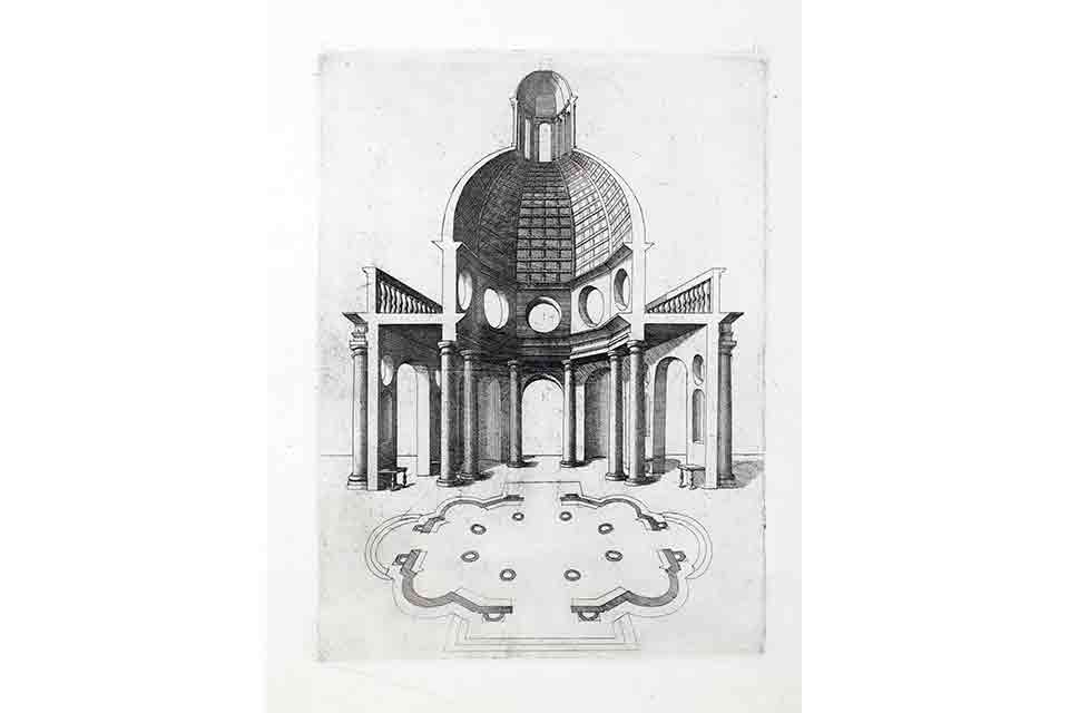 Na wystawie prezentujemy 56 miedziorytów i akwafort wykonanych w XVI–XVIII przez wieku znakomitych rysowników i rytowników, pracujących dla renomowanych wydawców. Przedstawiają dzieła najwybitniejszych mistrzów włoskiego renesansu – Michała Anioła, Rafaela Satni, Andrei Palladia i innych. Prawdziwą rzadkością jest wśród nich fantazja architektoniczna rytowana przez wielkiego prekursora Odrodzenia – Donata Bramantego. Widoki renesansowych założeń i budowli, a także imponująco szczegółowe przedstawienia detali i ornamentów zabiorą nas w wyjątkową podróż do renesansowego Rzymu, ale też do Mediolanu, Loreto i Vicenzy. Pozwolą przy tym docenić rolę jaką przedstawienia graficzne odegrały w propagowaniu i rozprzestrzenianiu się włoskich renesansowych wzorców w całej Europie.
