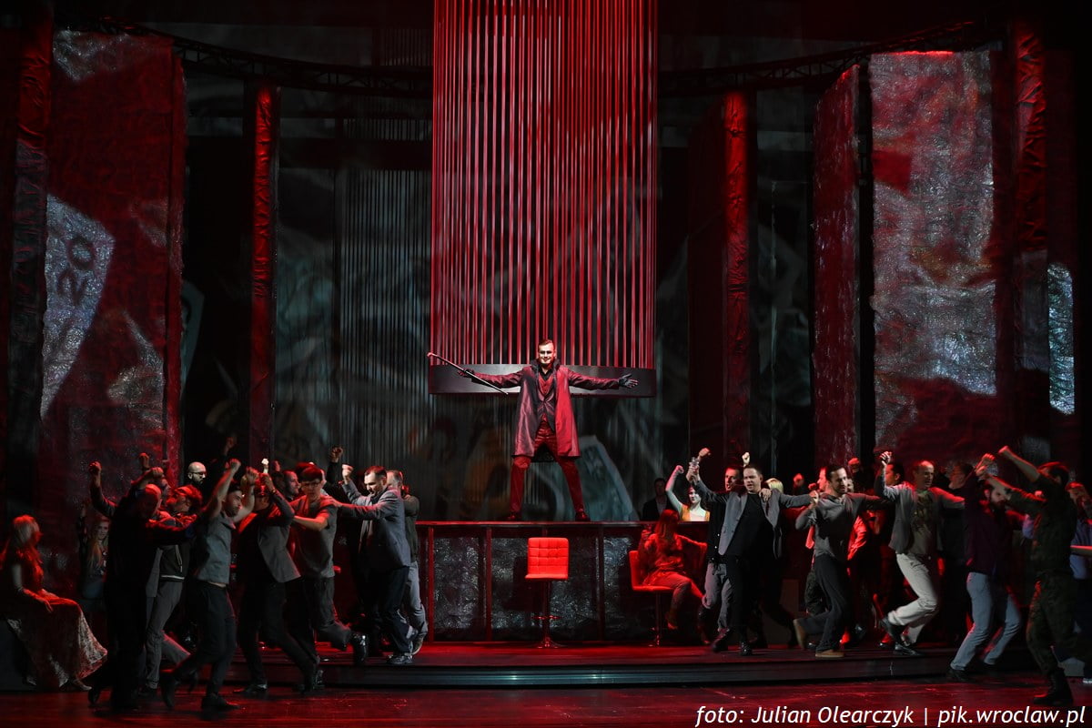 Dynamiczny chór, wystrzały, ogień, duże pudle, artyści przechodzący przed pierwszymi rzędami i patrzący w oczy widzom, współczesne wizualizacje i kostiumy … to wszystko złożyło się na inscenizacyjne powodzenie. A muzyka dodawała skrzydeł i porywała emocjonalnie bohaterów historii i widzów w obszary transcendentne.