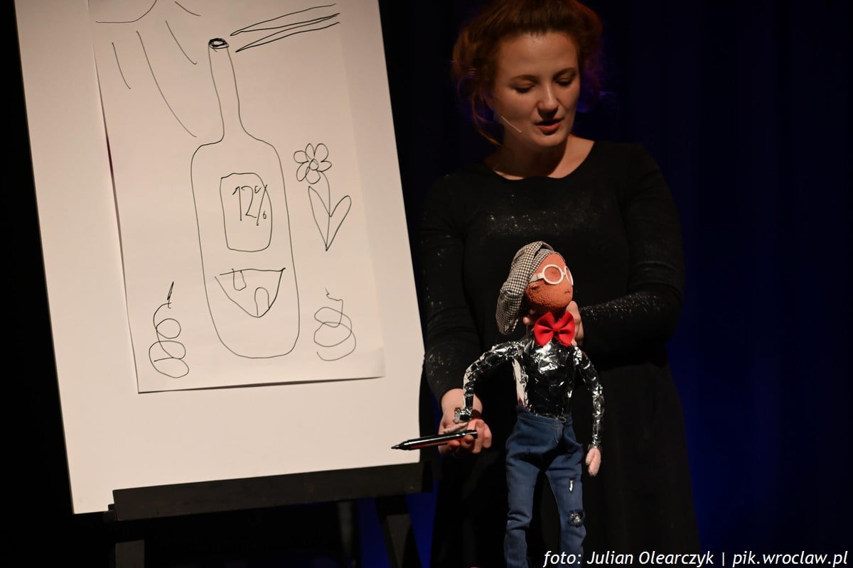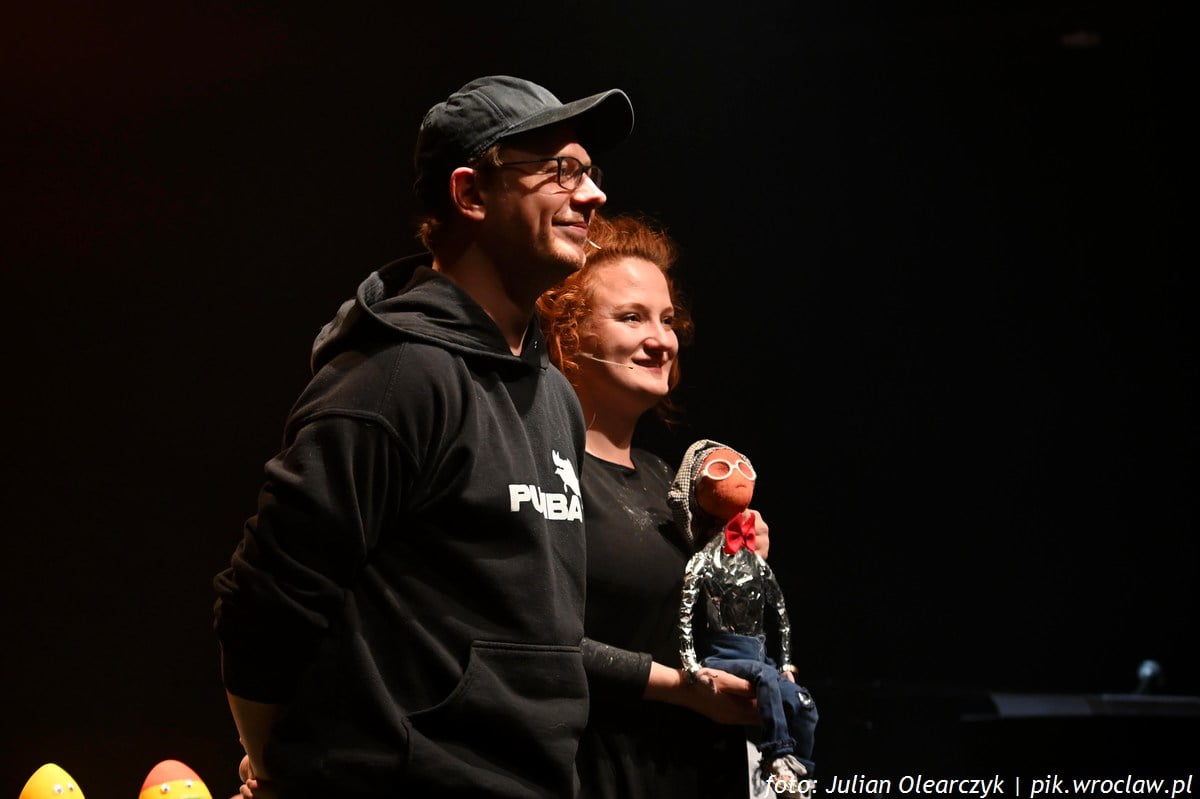 Szósty odcinek talk show dla dorosłych prowadzony przez gąbczastą lalkę z głową na kołku odbył się w sobotę 13 kwietnia na Scenie Kameralnej Wrocławskiego Teatru Lalek. Kazio Sponge to gwiazda sceny dla dorosłych, która nie boi się poruszać aktualnych tematów, częstuje zagrychą i wódką, czasem kiełbaskami sojowymi … i nie ma dla niego tematów tabu. Publiczność wyje ze śmiechu na jego występach. I nie jest to pusty śmiech, ale raczej ten podszyty refleksją, marzeniem o lepszym świecie. Nie inaczej było podczas przedostatniego odcinka serii. W „To już prawie koniec” Kazio Sponge, stworzony przez Annę Makowską- Kowalczyk, poruszał tematy kwietniowo – marcowo – majowe.