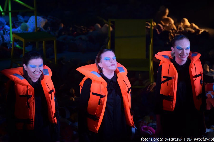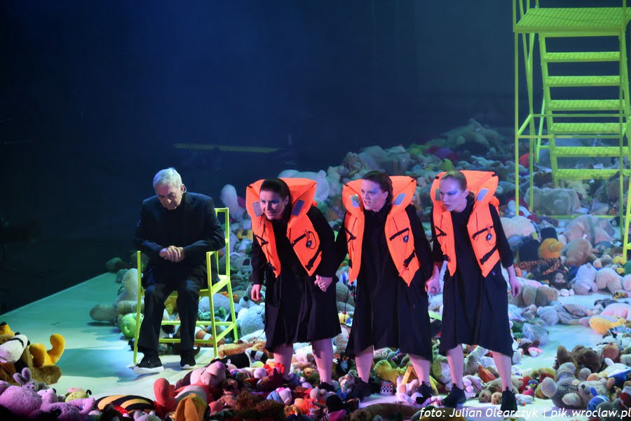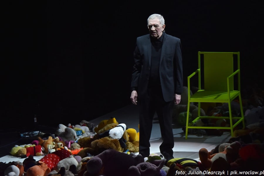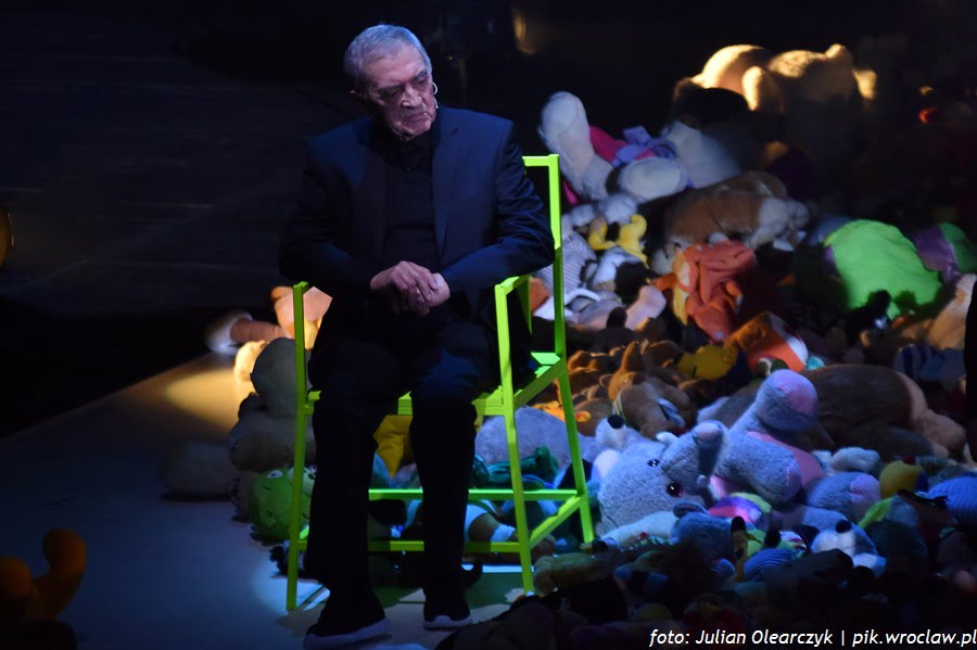Bohaterowie historii umieszczeni w sieci ścieżek usłanych pluszakami wykrzykiwali, wyszeptywali, recytowali i z trudem wypowiadali, słowa ważne, aktualne i znaczące. Słuchaliśmy polskich przebojów i wierszy. Dwa z nich – „Przesłanie Pana Cogito” utwór Zbigniewa Herbera zaprezentowany przez Jerzego Trelę i „Dziwny jest ten świat” tekst Czesława Niemena z trudem wydobywający się z ust Krzysztofa Globisza był dla jednych eksplozją, dla innych implozją wzruszeń. Szlochała lub tłumiła łzy wzruszenia chyba cała widownia. Tak silnych emocji dawno nie przeżywała wrocławska publiczność.