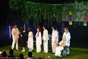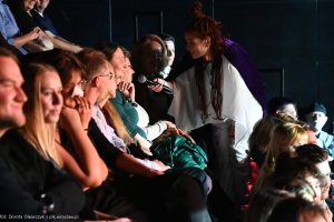 Aktorzy nie stronili od interakcji z publicznością. Prowadzili narrację ze sceny z bocznych przejść, bliskich rzędów i środkowej platformy na widowni. Tam też działy się brutalne wydarzenia, które jednych bawiły innych brzydziły. Niektórzy tańczyli, inni śpiewali i wznosili radosne okrzyki „Alleluja”.