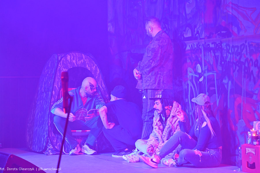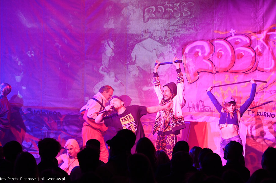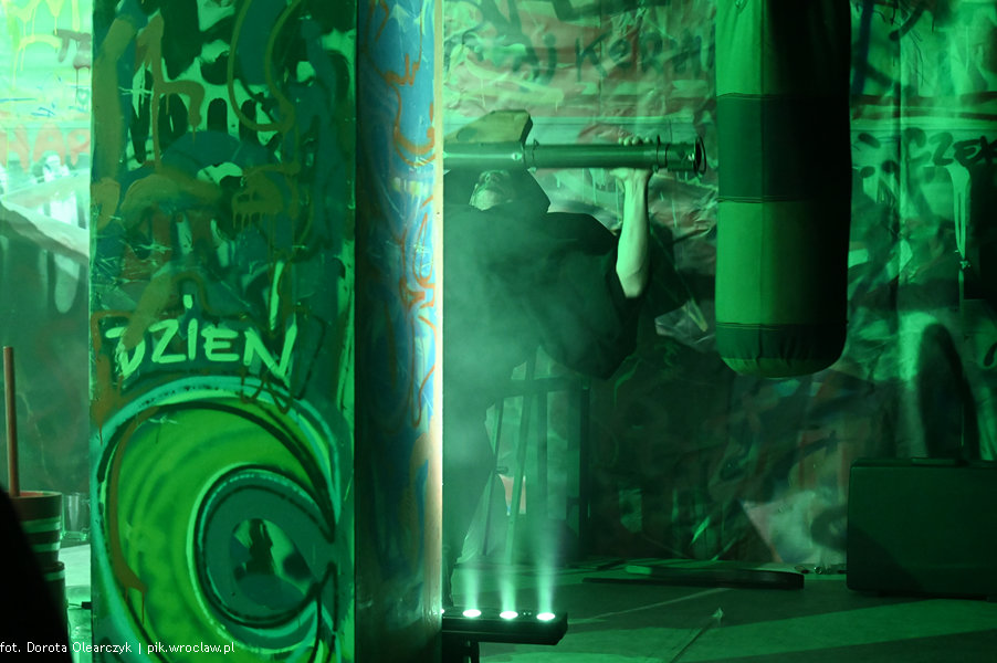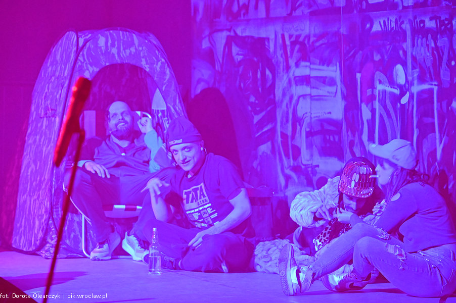 Przestrzeń Piekarni, Centrum Sztuk Performatywnych Instytutu Grotowskiego, stoimy, aktorzy chodzą między nami, obserwują nas, a my ich. Niektórzy ubrani są w bluzy dresowe inni w poszarpane i dziurawe swetry lub garnitury. Bar – po lewej, ściana z muralami – w tle sceny. Stoimy, kołyszemy się, klaszczemy, gwiżdżemy, krzyczymy. Taki klimat urządzili widzom aktorzy z Teatru Polskiego w Poznaniu podczas spektaklu „Nowy PAN TADEUSZ, tylko że rapowy” prezentowanego w ramach 46. edycji PPA.