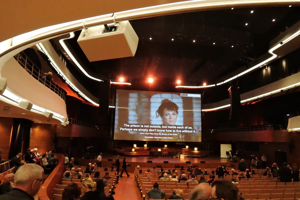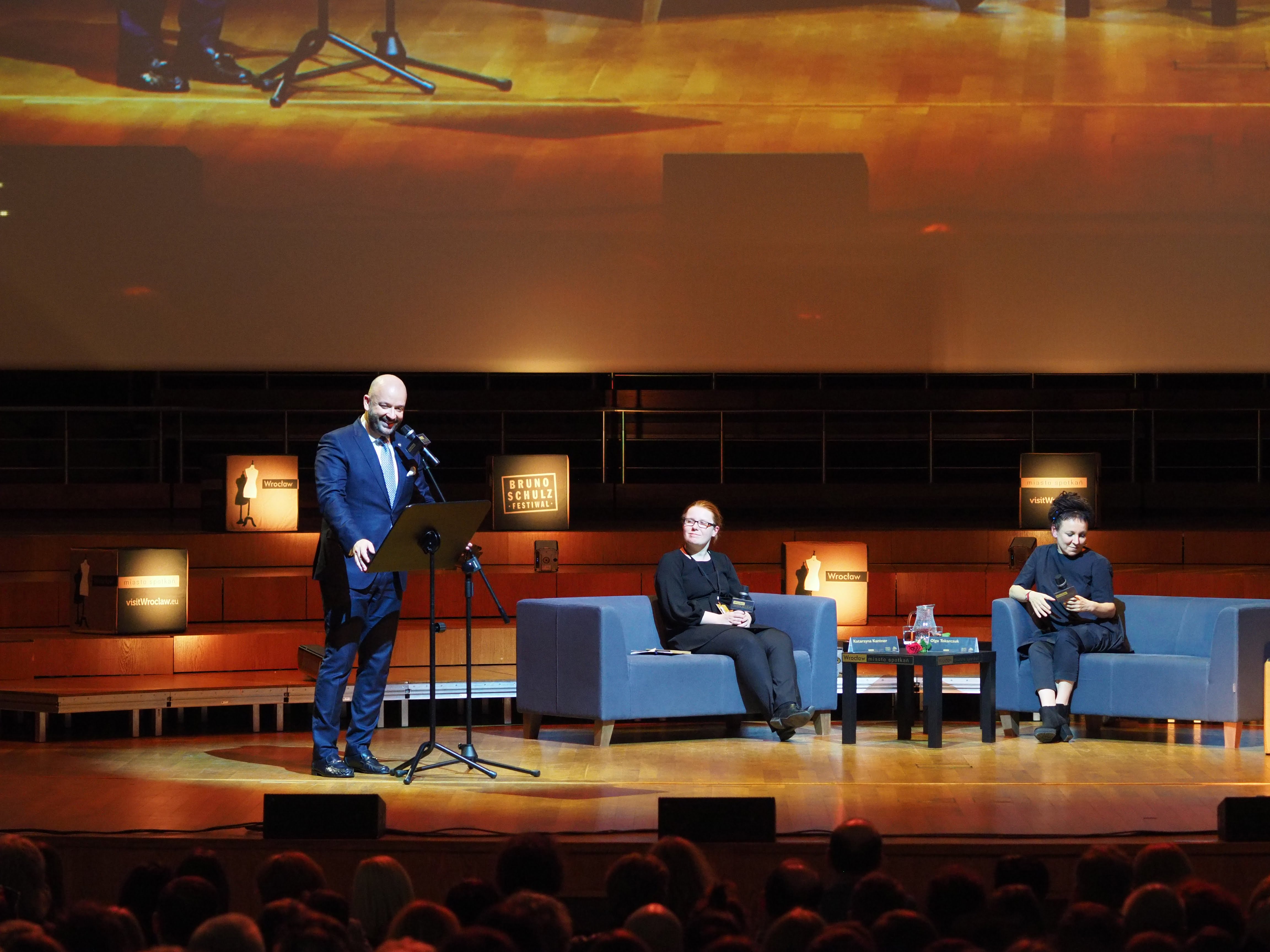 Zabrakło dla nich miejsc nawet w największej sali koncertowej NFM. Pomocne okazały się telebimy, na których publiczność przybyła na Plac Wolności przed gmachem Narodowego Forum Muzyki, mogła na bieżąco śledzić przebieg spotkania z Olgą Tokarczuk.