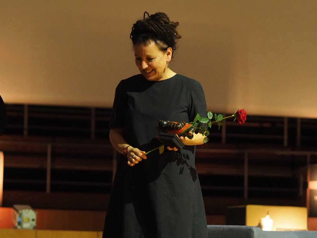 Pisarka, bardzo wzruszona skromnie przyznała, że wciąż z trudem dociera do niej fakt przyznania jej nagrody Nobla. Dla niej „noblistka” jednoznacznie kojarzy się z Wisławą Szymborską.