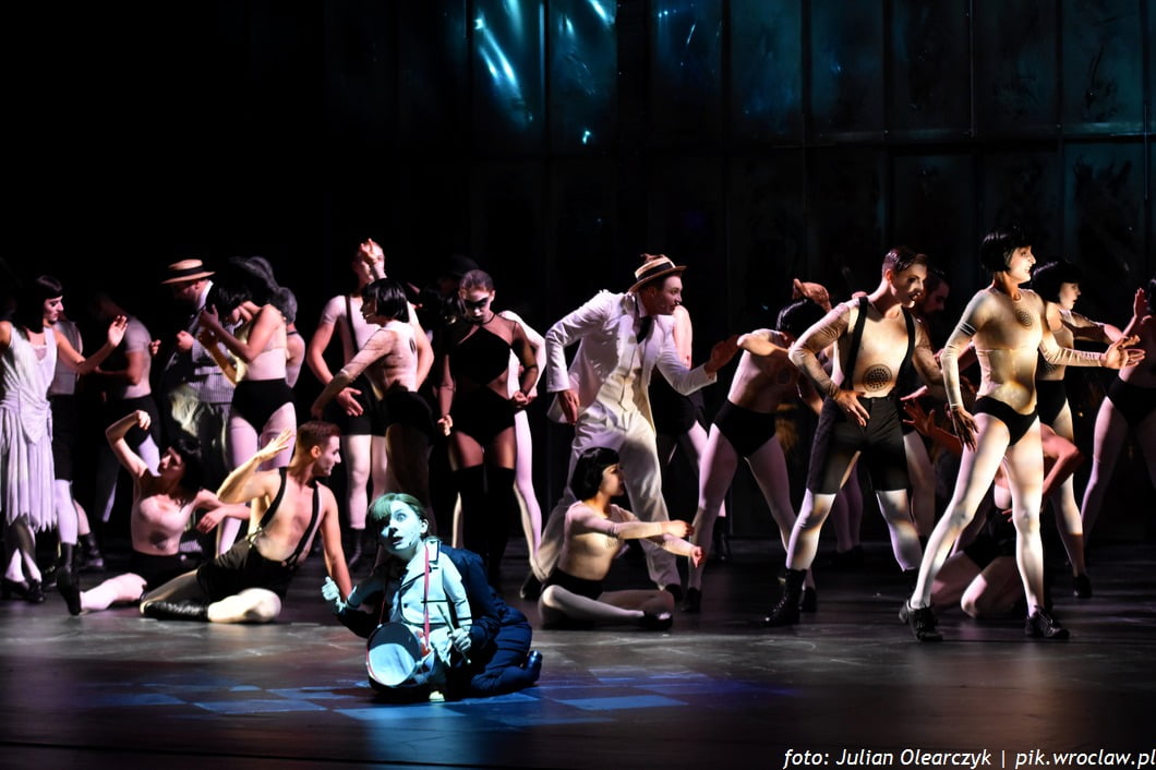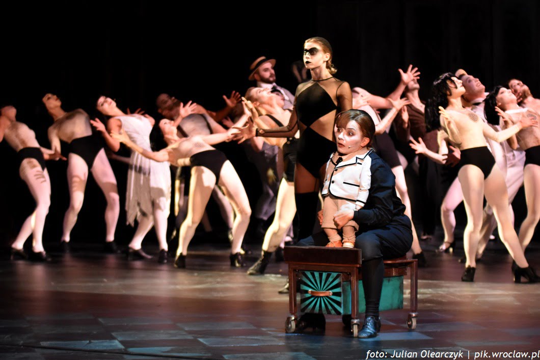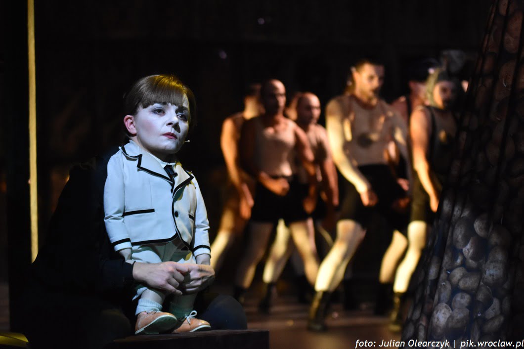 Główny bohater jest postacią o dziwnym wyrazie twarzy, ni to chłopiec ni dziewczynka, po prostu znakomicie ucharakteryzowana Agata Kucińska, która tańczy, śpiewa i nie schodzi ( chociaż precyzyjniej należałoby napisać, coś innego) ze sceny przez cały spektakl.