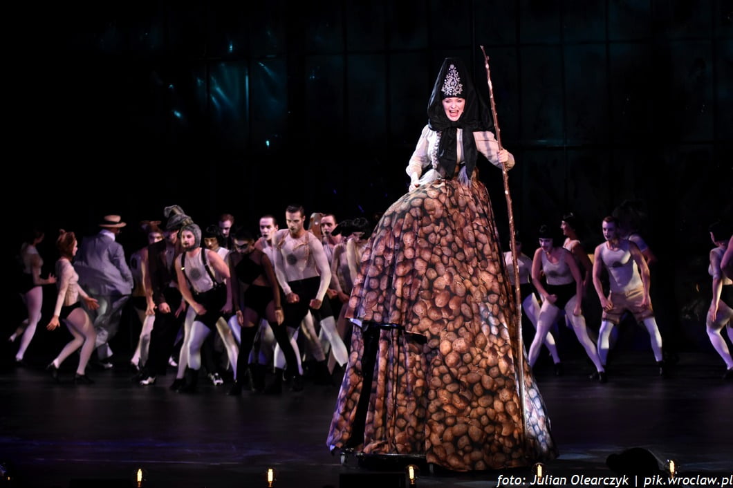 Kostiumy (projektu Anny Chadaj) dodają smaczku wizualnego, ale one raczej widoczne są z pierwszych rzędów. Z mojego miejsca na balkonie, mogłam tylko podziwiać Annę w wielowarstwowej sukni w pyry, z wzorami jajek i śledzi oraz olbrzymiego Markusa – żydowskiego właściciela sklepu z zabawkami, chwiejącego się na platformie jak wańka – wstańka.