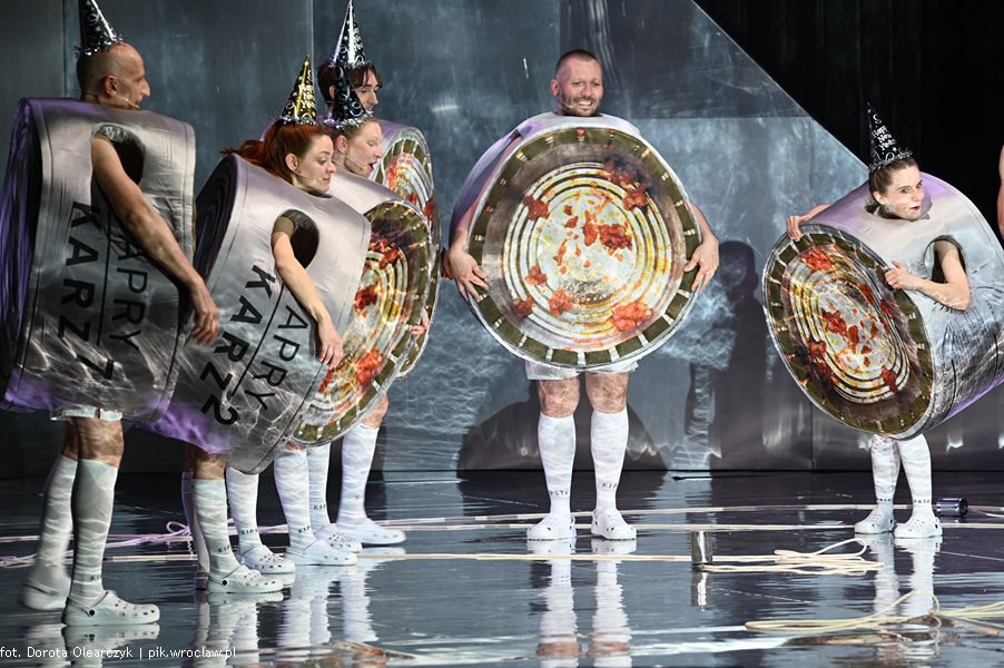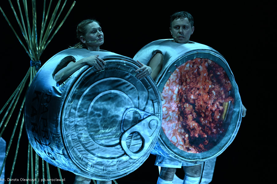 Antropomorfizacja konserwowego, zmielone mięsa rybiego z dodatkiem ryżu, cebuli, koncentratu pomidorowym, oleju roślinnego soli i przypraw zamkniętego w puszcze była zabawnym zabiegiem stylistycznym. Postacie żyły w granicach swoi aluminiowo- stalowych puszkowatych krągłości, w których dochodziło do przeobrażeń. Zjawiskowe, bajkowe kostiumy Mirka Kaczmarka przyciągały wzrok i były miękkim zaprzeczeniem twardej i trudnej do otwarcia puszki.