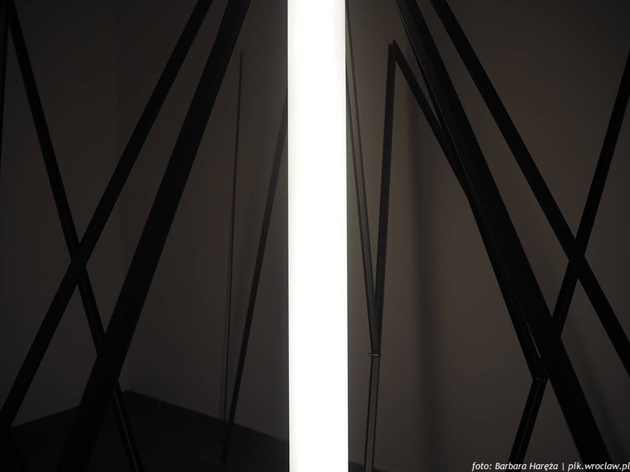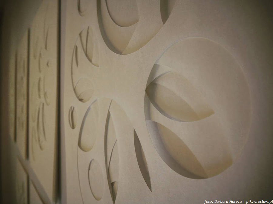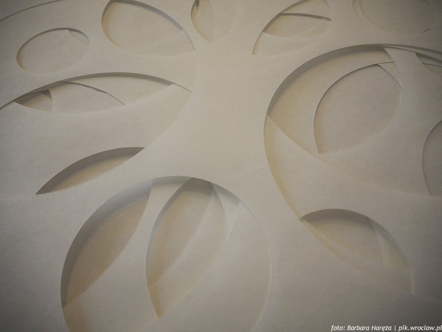 Zachwyca również cykl papierowych obiektów wykonanych z nachodzących na siebie przeźroczystych arkuszy bibuły z wyciętymi okręgami tworzącymi przypadkowy czy może jednak zamierzony wzór przestrzenny. Niespodzianka spotka nas także w podziemnej części galerii zaadaptowanej na czas ekspozycji na przestrzeń wystawienniczą. W wyłożonym czarną materią niewielkim pomieszczeniu zobaczymy jakże prostą, a jednocześnie niezwykłą instalację kinetyczną. Z całą pewnością na zwiedzających czeka, przy okazji obcowania ze sztuką, wysublimowana zabawa odkrywania iluzji.