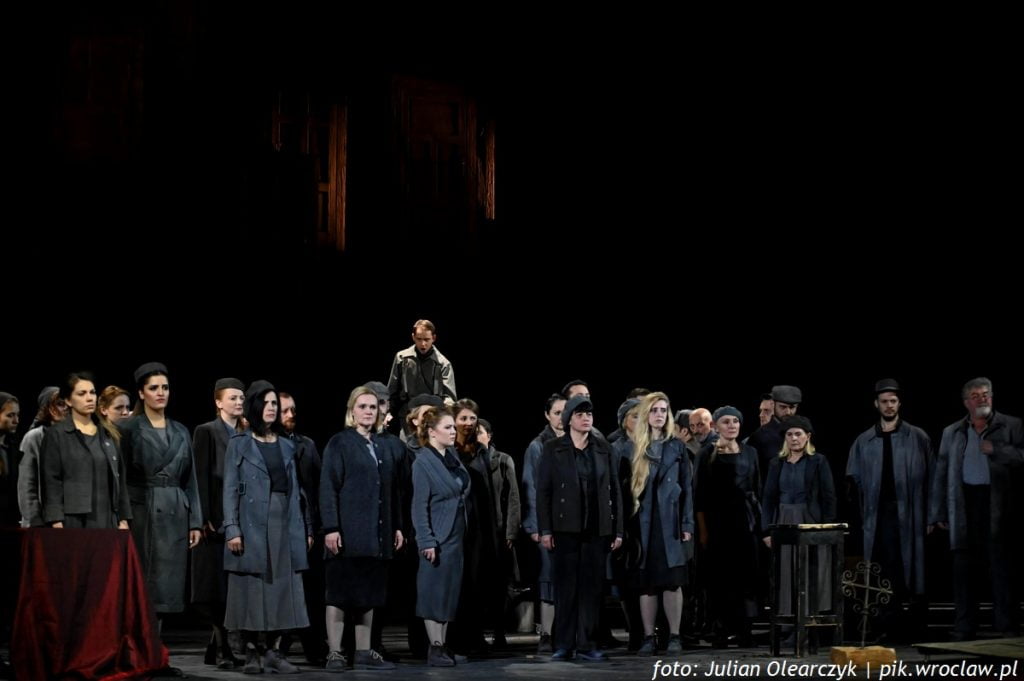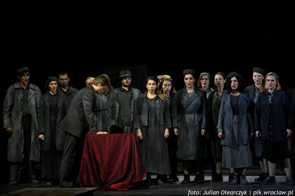 Kantata Stanisława Moniuszki napisana do tekstu drugiej części „Dziadów” Adama Mickiewicza to utwór eksploatowany scenicznie w pobliskim NFM-ie podczas 52. Wratisalvii Cantans. Tym razem, z okazji obchodów 200. rocznicy urodzin Moniuszki zobaczyliśmy „Widma” w Operze Wrocławskiej. I dobrze, bo to dwie zupełnie inne inscenizacje. O ciekawym pomyśle Pawła Passiniego pisaliśmy już w relacji: Widma na 52. Wratislavii Cantans, więc odstawmy ją na bok i przejdźmy do Fretowskich „Widm”.