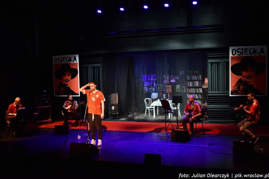 W sobotę, 17 marca, Marcin Januszkiewicz wraz z zespołem stworzyli doskonałą drużynę Osieckiej. Celnym napastnikiem był Januszkiewicz, na skrzydłach wspierali go Jacek Kita: instrumenty klawiszowe, Łukasz Czekała: skrzypce elektryczne, Bartek Alber Serafinowicz: gitara, Piotr Domagalski: gitara basowa. Scenografia nie pozostawiała wątpliwości, że najważniejszą osobą jest tutaj Osiecka. W tle pokoik z fotografiami, na skrzydłach sceny – plakaty z podobizną Agnieszki Osieckiej z męskim wąsem puszczały oko do publiczności. Rozpoczęło się przebojowo, z czasem będzie coraz smutniej, tak jak w życiu, komentowała drużyna Osieckiej.